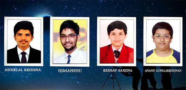 അന്താരാഷ്ട്ര ബഹിരാകാശ ഒളിമ്പ്യാഡിന്റെ പ്രാഥമികതലപരീക്ഷയില് ആഷിക് ലാല് കൃഷ്ണ, ഹിമാന്ഷു, കേശവ് സക്സേന, ആനന്ദ് ഗോപാലകൃഷ്ണന് എന്നിവര് ഒന്നാം സ്ഥാനം കരസ്ഥമാക്കി