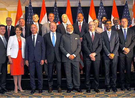 ഗൂഗിള് സിഇഒ സുന്ദര് പിച്ചെ, ആപ്പിള് സിഇഒ ടിം കുക്ക്, ആമസോണ് മേധാവി ജെഫ് ബിസോസ് ഉള്പ്പെടെ 21 വ്യവസായ പ്രമുഖര് പ്രധാനമന്ത്രിയുമായുള്ള കൂടിക്കാഴ്ചയില് പങ്കെടുത്തു. പോര്ച്ചുഗലില് നിന്നാണ് മോദി യുഎസില് എത്തിയത്. വാഷിങ്ടന് ഡിസിയിലെ ജോയിന്റ് ബേസ് ആന്ഡ്രൂസില് വിമാനമിറങ്ങിയ പ്രധാനമന്ത്രി മോദിയെ സ്വീകരിക്കാന് വിവിധ ഉദ്യോഗസ്ഥരും മേഖലയിലെ ഇന്ത്യന് സമൂഹവുമെത്തി.