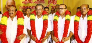 ചേര്ത്തല: എസ്എന്ഡിപി യോഗത്തിനു കീഴിലുള്ള എസ്എന് ട്രസ്റ്റിലേക്കുള്ള തെരഞ്ഞെടുപ്പില് വെള്ളാപ്പള്ളി നടേശന് പാനലിന് വിജയം. ജനറല് സെക്രട്ടറിയായി തുടര്ച്ചയായ എട്ടാംവട്ടവും വെള്ളാപ്പള്ളി നടേശന് വിജയിച്ചു. അസിസ്റ്റന്റ് സെക്രട്ടറിയായി തുഷാര് വെള്ളാപ്പള്ളിയും തെരഞ്ഞെടുക്കപ്പെട്ടു. ഡോ.എംഎന് സോമനെ ചെയര്മാനായും ജി. ജയദേവനെ ട്രഷററായും തെരഞ്ഞെടുത്തു.