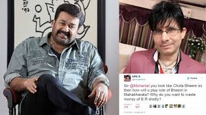 ബാഹുബലി താരം പ്രഭാസ് ആണ് മഹാഭാരതത്തിലെ ഭീമനെ അവതരിപ്പിക്കാന് ഏറ്റവും അനുയോജ്യനെന്നും കൃഷ്ണനായി അഭിനയിക്കാൻ ആഗ്രഹമുണ്ടെന്നും കൂട്ടിച്ചേർത്തു. താനും കൃഷ്ണനും ഉത്തര്പ്രദേശില് ജനിച്ചവരാണെന്നും അതുകൊണ്ട് തനിക്ക് കൃഷ്ണനാകാന് താല്പര്യം ഉണ്ടെന്നുമായിരുന്നു ട്വീറ്റ്. എം.ടി. വാസുദേവന് നായരുടെ പ്രശസ്ത നോവല് രണ്ടാമൂഴത്തെ ആസ്പദമാക്കി ഒരുക്കുന്ന മഹാഭാരതം സിനിമയുടെ ഔദ്യോഗിക പ്രഖ്യാപനം വന്നതിനുശേഷമാണ് കെ.ആര്.കെ മോഹന്ലാലിനെ പരിഹസിച്ച് രംഗത്തെത്തിയത്.