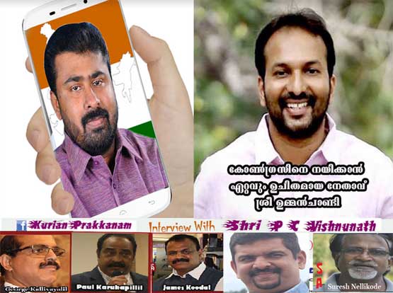 കെപിസിസി പ്രസിഡന്റ് ആയി കേരളത്തില് കോണ്ഗ്രസിനെ നയിക്കാന് ഏറ്റവും ഉചിതമായ നേതാവ് ഉമ്മന്ചാണ്ടി ആണന്നു കോണ്ഗ്രസ്സ് നേതാവും മുന് എംഎല് യുമായ പി.സി വിഷ്ണുനാഥ് പറഞ്ഞു. മലയാള മയൂരം ടി വി യുമായുള്ള അഭിമുഖത്തിലാണ് അദ്ദേഹം ഇക്കാര്യം പറഞ്ഞത് കുര്യന് പ്രാക്കാനത്തോടൊപ്പം ദീപിക അസോസിയേറ്റ് എഡിറ്റര് ജോര്ജ് കള്ളിവയലില്, അമേരിക്കയിലെ പ്രമുഖ സമൂഹ്യ പ്രവര്ത്തകന് പോള് കറുകപള്ളില്, രാഷ്ട്രീയ നിരീക്ഷകന് ജെയിംസ് കൂടല് , കാനഡയിലെ മാധ്യമ പ്രവര്തകന് വിനോദ് ജോണ്, രാഷ്ട്രീയ നിരീക്ഷകന് സുരേഷ് നെല്ലികൊടെ തുടഞ്ഞിയവര് ഈ സംവാദത്തില് പങ്കെടുത്തു.