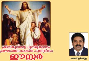 മരണത്തെ ജയിച്ച വീണ്ടെടുപ്പുകാരനായ ക്രിസ്തുവിന്റെ പുനരുത്ഥാനം പ്രത്യാശയുടെ സന്ദേശം നല്കുന്ന സുദിനമാണ്. മനുഷ്യവര്ഗ്ഗത്തിന്റെ രക്ഷകനായ ക്രിസ്തുവിന്റെ ഉയിര്പ്പ് ക്രിസ്തീയ വിശ്വാസത്തിന്റെ അടിസ്ഥാനമാണ്. പീഡാനുഭവങ്ങളെ അതിജീവിച്ച് ഉത്ഥാനത്തിന്റെ സന്ദേശം ലോകത്തിന് പ്രഘോഷണംചെയ്ത പുണ്യദിനമായ ഈസ്റ്റര് നമുക്ക് ഉണര്വ്വേകുന്നു. ”ലോകം മുഴുവന് കീഴ്മേല് മറിഞ്ഞാലും എന്റെ വചനങ്ങള് മാഞ്ഞ് പോകില്ലെന്ന്” അവിടുന്ന് നമ്മെ ഓര്മ്മിപ്പിക്കുന്നു.