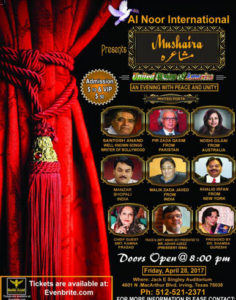ഇര്വിംഗ്(ഡാളസ്) : അല്നൂര് ഇന്റര്നാഷ്ണല് ഏഴാമത് വാര്ഷീകത്തോടനുബന്ധിച്ച് കവി സമ്മേളനവും മുഷൈറയും സംഘടിപ്പിക്കുന്നു. ഇര്വിങ്ങ് മെക്കാര്തര് ബിലവഡിലുള്ള ജാക്ക് ഇ സിംഗിള് ആഡിറ്റോറിയത്തില് ഏപ്രില് 28 വെള്ളിയാഴ്ച രാത്രി 8 മണിക്കാണ് പരിപാടികള് ആരംഭിക്കുന്നത്.സുപ്രസിദ്ധ ബോളിവുഡ് ലിറിസിസ്റ്റും, കവിയുമായ സന്തോഷ് ആനന്ദാണ് പരിപാടികള്ക്കു നേതൃത്വം നല്കുന്നത്.പ്രവേശനം പാസു മൂലം നിയന്ത്രിച്ചിട്ടുണ്ട്. കൂടുതല് വിവരങ്ങള്ക്ക് 512 521 2371 നമ്പറുമായി ബന്ധപ്പെടേണ്ടതാണ്.