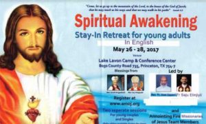 ഡാളസ് : ഡാളസിനടുത്തുള്ള പ്രിന്സ്റ്റണില് യുവജനങ്ങള്ക്കും മുതിര്ന്നവര്ക്കുമായി മേയ് 26 മുതല് 28വരെ താമസിച്ചുള്ള ഇംഗ്ലീഷ് ധ്യാനം സംഘടിപ്പിക്കുന്നു. പ്രിന്സ്റ്റണിലെ ലേക്ക് ലീമോണ് ക്യാംപ് ആന്ഡ് കോണ്ഫറന്സ് സെന്ററാണ് (8050 ഇീ ഞറ 735, ജൃശിരലീേി, ഠത 75407) വേദി. പ്രമുഖ വചനപ്രഘോഷകരായ ഫാ. ജോസ് ഉപ്പാണി, ഫാ. സജു ഇലഞ്ഞിയില് തുടങ്ങിയവര് നയിക്കും.