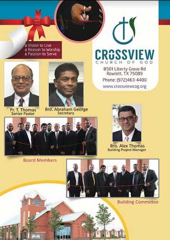 1980 മുതല് ഡാളസ് സിറ്റിയുടെ ഹൃദയഭാഗത്തിനു കിഴക്കായി ആരാധിച്ചുവന്നിരുന്ന ഈസ്റ്റ് ഡാളസ് ചര്ച്ച് ഓഫ് ഗോഡിന്റെ പുതിയ ആരാധനാമന്ദിരത്തിന്റെ നിര്മ്മാണ പ്രവര്ത്തനം പൂര്ത്തിയായി. ആദ്യ സമര്പ്പണ പ്രാര്ത്ഥനാ ശുശ്രൂഷ മാര്ച്ച് 5 ഞായറാഴ്ച നടന്നു. നിലവിലുള്ള ആലയത്തില് സ്ഥലപരിമിതി മൂലം സഭാംഗങ്ങള്ക്കും മറ്റും അനായാസേന വന്നുചേരത്തക്കവിധത്തില് റോളറ്റ് സിറ്റിയിലേക്ക് സഭാ കെട്ടിടം മാറ്റിപണിഞ്ഞതിന്റെ ഭാഗമായി സഭയുടെ പേരു ക്രോസ് വ്യൂ ചര്ച്ച് എന്നു പുനര് നാമകരണം ചെയ്യുകയായിരുന്നു.