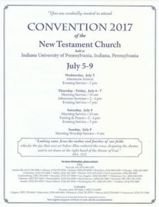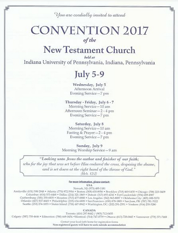 ന്യൂജേഴ്സി : ന്യൂ ടെസ്റ്റ്മെന്റ് ചര്ച്ചിന്റെ വാര്ഷിക കണ്വെന്ഷന് ജൂലൈ 5 മുതല് 9 വരെ ഇന്ത്യാനാ, പെന്സല്വേനിയയില് ഉള്ള ഇന്ത്യാനാ യൂണിവേഴ്സിറ്റി ഓഫ് പെന്സല്വേനിയയില് (Kovalchick Convention center, Indiana University of Pennsylvania, 711 Pratt Dr., Indiana, PA 15705) വച്ച് നടത്തപ്പെടുന്നതാണ്. അമേരിക്കയിലും കാനഡയിലുമുള്ള ഏകദേശം 32 ഓളം ലോക്കല് ചര്ച്ച് വിശ്വാസികളും, ലോകത്തിന്റെ പല ഭാഗങ്ങളില് നിന്നുള്ള സഭാവിശ്വാസികളും ഈ വാര്ഷിക കണ്വെന്ഷനില് പങ്കെടുക്കുന്നതാണ്.