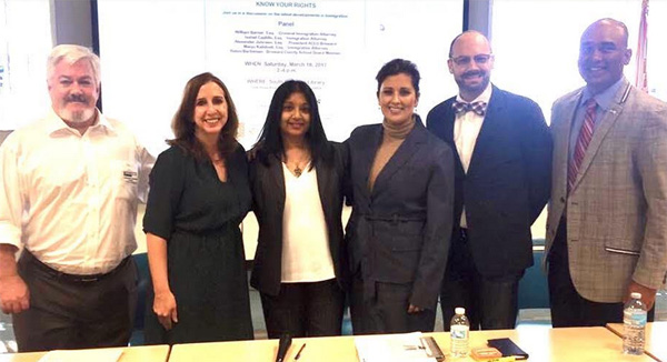 ഫ്ളോറിഡ: സൗത്ത് ഫ്ളോറിഡാ ഇന്ത്യന് സമൂഹത്തിന്റെ നേതൃത്വത്തില് ACLU (American Civil Liberties Union) ബ്രോവാര്ഡ് കൗണ്ടി പ്രസിഡന്റ് അലക്സ് പാട്രിക് ജോണ്സണും മറ്റ് മൂന്ന് അറ്റോര്ണിമാരും ചേര്ന്ന് സമകാലീന പ്രധാന വിഷയമായ “പ്രവാസികളും എക്സിക്യൂട്ടീവ് ഓര്ഡറുകളും” എന്ന വിഷയത്തെപ്പറ്റി ഗഹനമായ പാനല് ചര്ച്ച മാര്ച്ച് 18-ന് ബ്രോവാര്ഡ് കൗണ്ടി ലൈബ്രറിയില് വച്ച് നടത്തി. നിങ്ങളുടെ അവകാശങ്ങള് അറിയുക (know your rights) എന്ന സുപ്രധാന വിഷയത്തെപ്പറ്റി അറ്റോര്ണിമാര് പ്രധാനമായും ചൂണ്ടിക്കാട്ടിയ മൂന്ന് കാര്യങ്ങള് “first amendment right” ആയ സംസാരിക്കാതിരിക്കാനുള്ള അവകാശം (right to remain silent or Miranda right), നിയമസഹായം ലഭിക്കാനുള്ള അവകാശം (right to have a lawyer) എന്നിവയും “fifth amendment right” ആയ സ്വയം കുറ്റപ്പെടുത്തി വിചാരണ ചെയ്യപ്പെടാതിരിക്കാനുള്ള അവകാശവും (right against self incrimination) ആയിരുന്നു. എക്സിക്യൂട്ടീവ് ഓര്ഡറുകളുടെ അടിസ്ഥാനത്തില് അമേരിക്കന് പൗരന്മാരുടെയും, ഗ്രീന് കാര്ഡ് ഉള്ളവരുടെയും, മറ്റ് ഇമിഗ്രന്റ് വിഭാഗത്തില് ഉള്ളവരുടെയും അവകാശങ്ങള് ലംഘിക്കപ്പെടുന്നുണ്ടെന്നും അതേപ്പറ്റി സമൂഹത്തില് ബോധവല്ക്കരണം ആവശ്യമുണ്ടെന്നും അറ്റോര്ണിമാര് ചൂണ്ടിക്കാട്ടി. പൗരന്മാരല്ലാത്ത കുറ്റവാളികളെ തിരിച്ചയക്കുന്നതും (deportation) വ്യാപകമായിട്ടുണ്ട്. ചര്ച്ചകള്ക്കു ശേഷം ACLU, അമേരിക്കന് ഇമിഗ്രേഷന് ലായര് അസോസിയേഷന് എന്നിവര് ലഘുലേഖകളും വിതരണം ചെയ്തു. ക്രിമിനല് ലായര് വില്യം ബാര്നര്, ഇമിഗ്രേഷന് ലോയര് മഞ്ജു കലിനിടി, ഇമിഗ്രേഷന് ലോയര് ഇസബെല് കസ്റ്റ്ടീയൊ, ബ്രോവാര്ഡ് കൗണ്ടി സ്കൂള് ബോര്ഡ് മെംബര് റോബിന് ബാര്ടിമാന്, ഹിസ്പാനിച് കൊയാലിഷന് ഡിയറക്ടര് മര്ലീന് അരിബ്ബാസ്, ഇന്ത്യന് കമ്മ്യൂണിറ്റി ലീഡര് സാജന് കുര്യന് എന്നിവര് ചര്ച്ചയ്ക്ക് സജീവ നേതൃത്വം നല്കി.