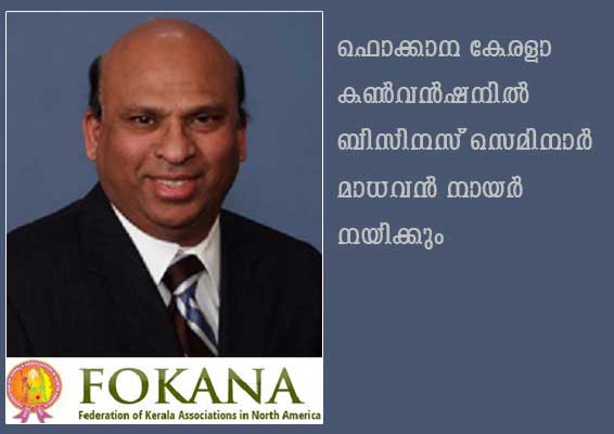 ഫൊക്കാന കേരളാകണ്വെന്ഷന് ഇനി ദിവസങ്ങള് മാത്രം ബാക്കി നില്ക്കേ അമേരിക്കന് മലയാളികളുടെ പ്രിയപ്പെട്ട സംഘടന മെയ് 27 ന് ആലപ്പുഴയില് നടക്കുന്ന ഫൊക്കാനാ കേരളാകണ്വന്ഷനില് ബിസിനസ്സ് സെമിനാറും നടത്തുന്നു.ഇതിനു ചുക്കാന് പിടിക്കുന്നത് അമേരിക്കയിലെ പ്രശസ്ത മലയാളി ബിസിനസ്സ്കാരനായ മാധവന് നായര്ആണ് .