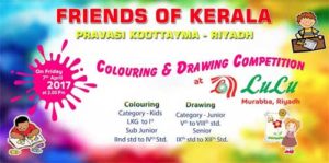 റിയാദ് ഫ്രണ്ട്സ് ഓഫ് കേരള കൂട്ടായിമയുടെ ഒമ്പതാം വാര്ഷികവും പുരസ്ക്കാരദാനവും ഈ വരുന്ന ഏപ്രില് പതിനാലാം തീയ്യതി വെള്ളിയാഴ്ച നടക്കുകയാണ് ,ആഘോഷപരിപാടിയുടെ ഭാഗമായി സംഘടിപ്പിച്ചിട്ടുള്ള കിഡ്സ് സബ്ജൂനിയര് ജൂനിയര് സിനിയര് വിഭാഗത്തില് നടത്തപെടുന്ന ചിത്രരചനാമത്സരം ലുലു ഹൈപ്പര് മാര്ക്കറ്റ് മൊറുബയില് വെച്ച് ഏപ്രില് 7 വെള്ളിയാഴ്ച ഉച്ചക്ക് രണ്ടുമണിക്ക് നടക്കും പങ്കെടുക്കാന് താല്പര്യമുള്ളവര് വിശദ വിവരങ്ങള്ക്ക് ബന്ധപെടുക ബന്ധപെടുക അന്സാര് 0504289774, 0508744610