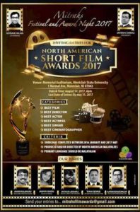 2016 ജനുവരിക്കും 2017 മേയ് 31 നും ഇടയില് പൂര്ത്തീകരിച്ച നോര്ത്ത് അമേരിക്കന് മലയാളികള് നിര്മിച്ചതോ സംവിധാനം ചെയ്തതോ ആയ മലയാളം ഹ്രസ്വചിത്രങ്ങളാണ് ഈ വര്ഷത്തെ അവാര്ഡിന് വേണ്ടി പരിഗണിക്കുന്നത്.