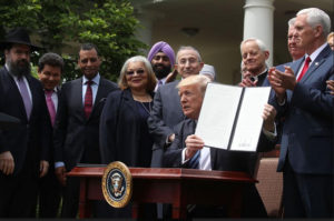 തങ്ങളുടെ മതവിശ്വാസത്തിന് വേണ്ടി നിലനില്‍ക്കുന്നവര്‍ യായൊരു വിധത്തിലും ശിക്ഷിക്കപ്പെടരുതെന്നും, തങ്ങള്‍ക്ക് ഇഷ്ടപ്പെട്ട രാഷ്ട്രീയ പാര്‍ട്ടികളേയോ, സ്ഥാനാര്‍ത്ഥികളേയോ പിന്തുണക്കുന്നതിന്റെ പേരില്‍ മത സ്ഥാപനങ്ങള്‍ക്ക് അനുവദിച്ചിരിക്കുന്ന ‘ടാക്സ് എക്സംപ്ഷന്‍’ നിഷേധിക്കപ്പെടരുതെന്നും തിരഞ്ഞെടുപ്പ് പ്രചരണത്തിനിടയില്‍ ട്രമ്പ് ഉറപ്പ് നല്‍കിയിരുന്നു.