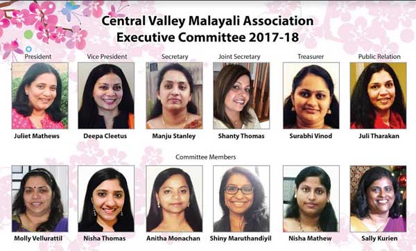 കാലിഫോര്ണിയ: സെന്ട്രല് വാലി മലയാളി അസോസിയേഷന്റെ 20172018 വര്ഷത്തെ ഭാരവാഹികളുടെ തെരഞ്ഞെടുപ്പ് ചരിത്രത്തിന്റെ ഏടുകളില് കുറിക്കപ്പെടും. ‘സ്ത്രീ ശാക്തീകരണം’ എന്ന ലക്ഷ്യത്തില് അടുത്ത രണ്ടു വര്ഷത്തെ ഭാരവാഹികളായി സ്ത്രീകളെ മാത്രമാണ് തെരഞ്ഞെടുത്തത്. വളരെ സ്തുത്യര്ഹമായ രീതിയില് അടുക്കും ചിട്ടയോടും കൂടിയായിരുന്നു കഴിഞ്ഞ പ്രവര്ത്തന വര്ഷം കമ്മിറ്റി പ്രവര്ത്തിച്ചത്. സ്റ്റാന്ലി സാമുവലിന്റെ നേതൃത്വത്തിലുള്ള കമ്മിറ്റി നവ നേതൃത്വത്തിന് എല്ലാവിധ കൈത്താങ്ങലും വാഗ്ദാനം ചെയ്തിട്ടുണ്ട്.