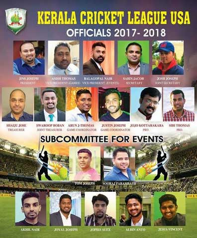 ന്യൂയോര്ക്ക് :കേരള ക്രിക്കറ്റ് ലീഗ് 20172018 ഭാരവാഹികളെ തിരഞ്ഞെടുത്തു, കഴിഞ്ഞ രണ്ടു വര്ഷത്തിനുള്ളില് അമേരിക്കന് മലയാളികളുടെ മനസ്സില് ഇടംനേടിയ #ഗഇഘ ഈ വര്ഷം വളരെ പുതുമകളോടെ ആണ് മുന്നോട്ടുവരുന്നതെന്ന് പുതിയ ഭാരവാഹികള് അറിയിച്ചു . ഒരു കായിക വിനോദത്തിനും ഉപരിയായി മലയാളികള് തമ്മില് ഉള്ള സ്നേഹത്തിനും #സാഹോദര്യത്തിനും തന്നെയാണ് ഈ പ്രാവശ്യവും മുന്ഗണന എന്ന് ഭാരവാഹികള് കൂട്ടിച്ചേര്ത്തു . കൂടുതല് ആളുകള്ക്ക് ഗഇഘ ലൂടെ #ഇന്റര്നാഷണല് മത്സരത്തിലേക്ക് അവസരം ഒരുക്കുന്നതിലും കൂടുതല് പ്രാധാന്യമെന്നും അറിയിച്ചു, മുന്വര്ഷങ്ങളില് വാശിയേറിയ മത്സരങ്ങള് കാഴ്ച്ചവെച്ച എല്ലാ ടീമുകളും ഇപ്പോള് തന്നെ അതികഠിനമായ പരിശീലനങ്ങള് ആരംഭിച്ചു കഴിഞ്ഞു .
