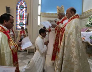 ന്യൂയോര്ക്ക്: ഷിക്കാഗോ സീറോ മലബാര് രൂപതയിലെ പ്രഥമ തദ്ദേശ വൈദിക വിദ്യാര്ഥി ബ്രദര് കെവിന് മുണ്ടയ്ക്കല് രൂപതാധ്യക്ഷന് മാര് ജേക്കബ് അങ്ങാടിയത്തില്നിന്നും ഡീക്കന് പട്ടം സ്വീകരിച്ചു.