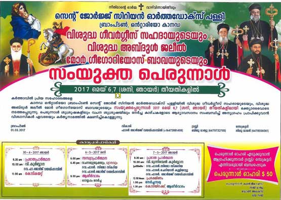 07:56 am 12/5/2017 – വര്ഗീസ് പ്ലാമൂട്ടില് ബര്ഗന്ഫീല്ഡ്, ന്യൂജേഴ്സി: ബര്ഗന് കൗണ്ടി മലയാളി ക്രിസ്ത്യന് ഫെലോഷിപ്പിന്റെ ഈസ്റ്റര് ആഘോഷം. ഏപ്രില് 23 ഞായറാഴ്ച ബര്ഗന്ഫീല്ഡിലെ സെന്റ് തോമസ് ഇവാഞ്ചലിക്കല് ദേവാലയത്തില് വെച്ച് അനുഗ്രഹീതമായി നടത്തപ്പെട്ടു. സിറിയന് ഓര്ത്തഡോക്സ് ആര്ച്ച് ഡയോസിസ് ഇന് നോര്ത്ത് അമേരിക്കയുടെ ആര്ച്ച് ബിഷപ്പ് അഭിവന്ദ്യ മാര് തീത്തോസ് യല്ദോ തിരുമേനി മുഖ്യാതിഥിയായി ഈസ്റ്റര് സന്ദേശം നല്കി. ക്രിസ്തു മരിച്ച് ഉയര്ത്തെഴുന്നേറ്റുവെന്നുള്ളത് ക്രിസ്ത്യാനികളുടെ അടിസ്ഥാനപരമായ വിശ്വാസമായതുകൊണ്ടുതന്നെ ക്രിസ്ത്യാനികളെ സംബന്ധിച്ചിടത്തോളം ഏറ്റവും പ്രാധാന്യമേറിയ ആഘോഷം Read more about ബര്ഗന് കൗണ്ടി മലയാളി ക്രിസ്ത്യന് ഫെലോഷിപ്പ് ഈസ്റ്റര് ആഘോഷിച്[…]